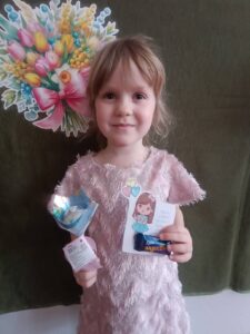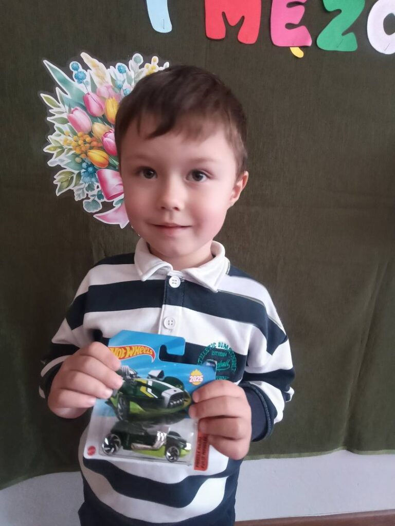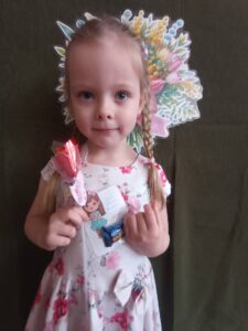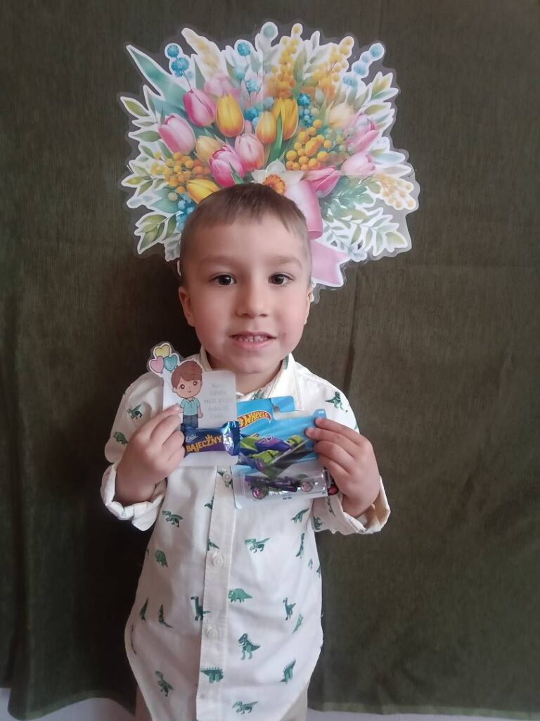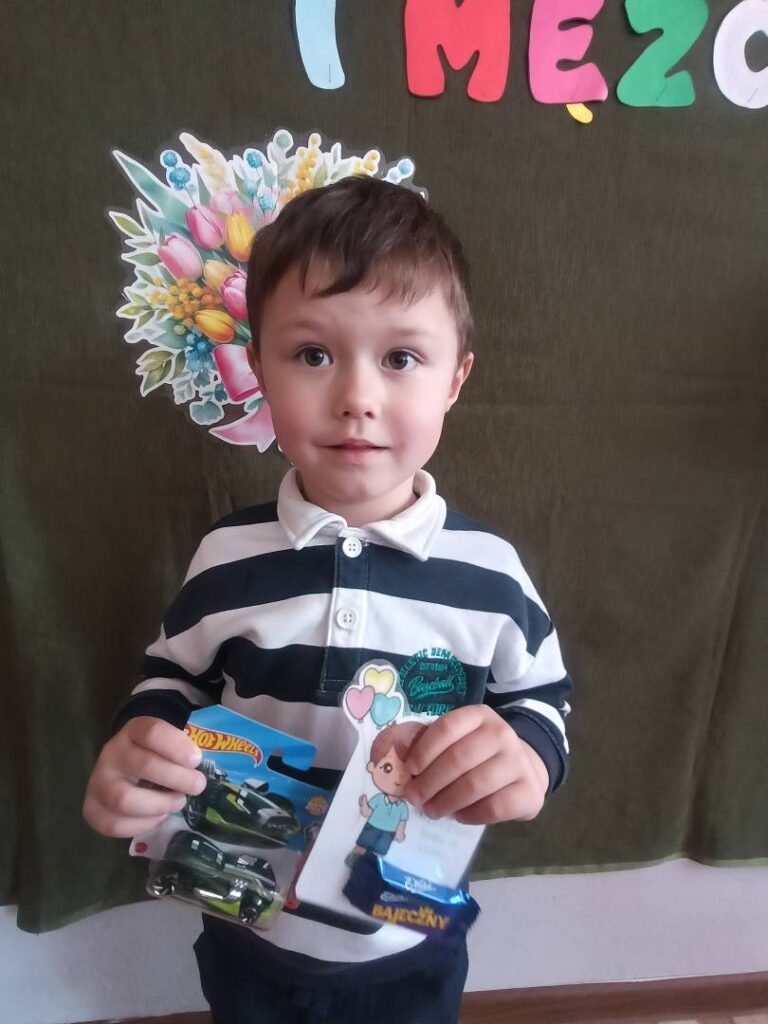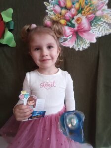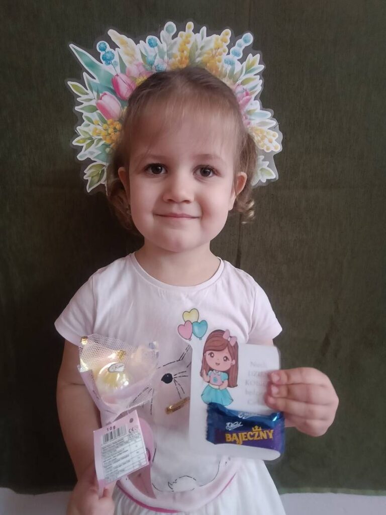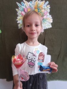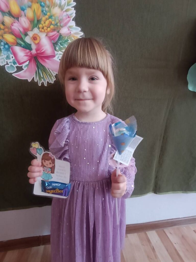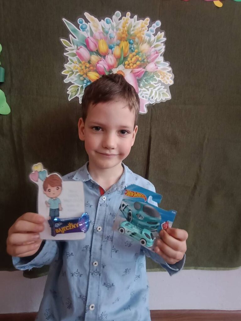 Następnie dzieci otrzymały drobne upominki, które sprawiły im wiele radości i wywołały uśmiechy na twarzach. Był to bardzo miły moment, podczas którego panowała serdeczna i świąteczna atmosfera.